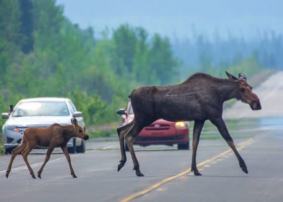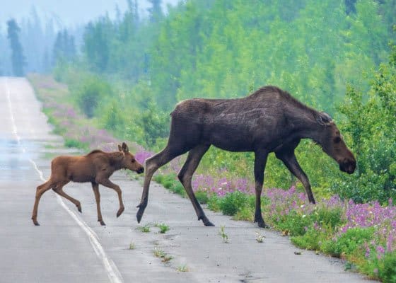 On our road trip to Haines, Alaska, we found this mom and baby moose on the side of the road near Kathleen Lake. Just look at how the little baby follows its mom. It was only a few minutes, but we could have sat and watched them for hours!